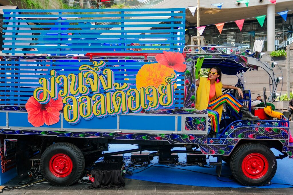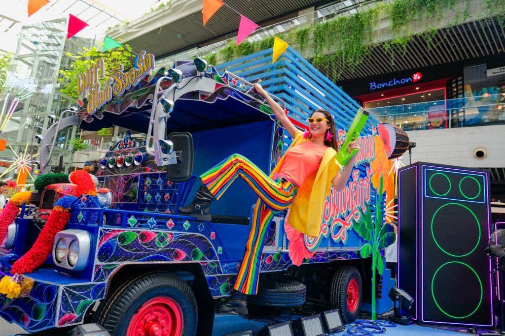 เพิ่มดีกรีความม่วนให้สุด เนรมิต FoodWalk Plaza เป็นมหรสพไทยบ้านยุคใหม่สุดคึกคัก เต็มไปด้วยแสง สี เสียง และกิจกรรมสนุกตลอดวัน ไฮไลต์เด็ดมีทั้ง รถอีแต๋นซิ่ง สีสันจัดจ้านพร้อมดนตรีมันส์, การแสดงสด + ดนตรีสด ในธีมสงกรานต์