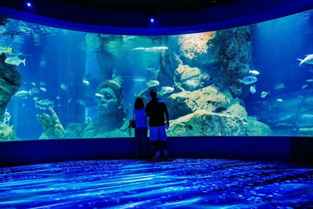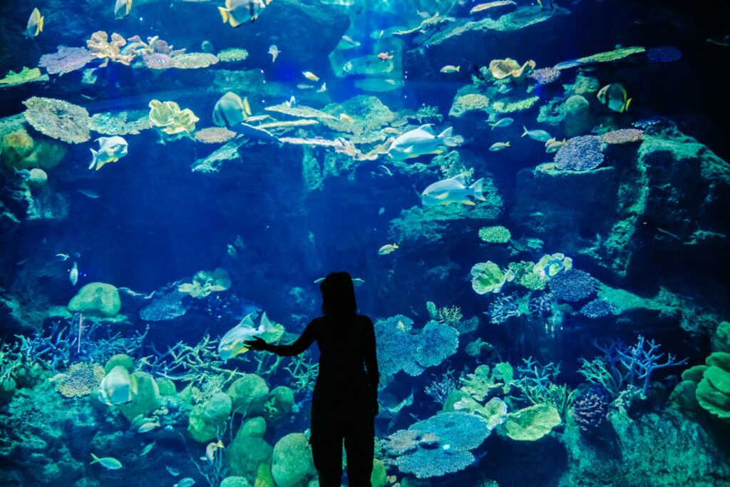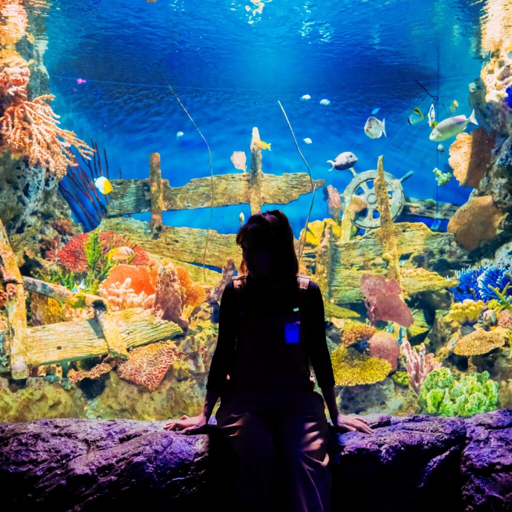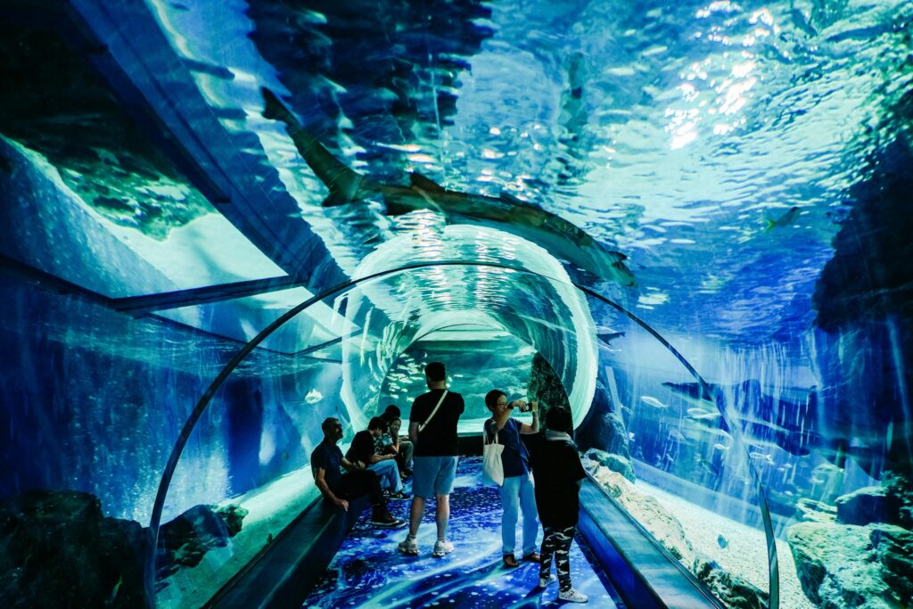มีอุโมงค์กระจกให้เดินชมสัตว์น้ำรอบด้านแบบ immersive ด้วยนะครับ
