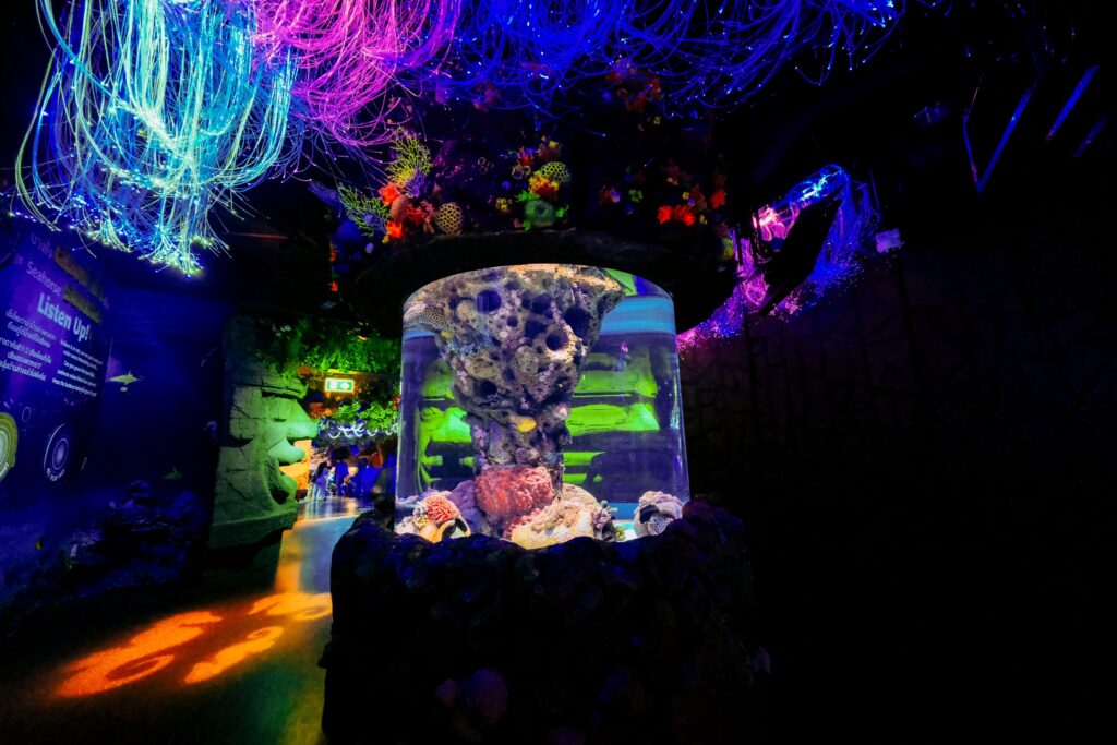 ชมความสวยงามของโลกใต้ทะเลที่หาชมยากแบบใกล้ชิด พร้อมแสงสีสุดวิบวับที่จำลองบรรยากาศของทะเลยามค่ำคืน บอกเลยว่าสวยอลังมากมาเที่ยวได้ทั้งครอบครัว ยิ่งช่วงปิดเทอมแบบนี้ยิ่งน่าเที่ยว เพราะทั้งสวย ทั้งเย็นฉ่ำ ไม่ต้องเดินทางไกลให้เหนื่อย